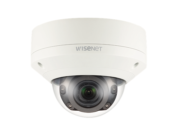 Wisenet X powered by Wisenet 5 network IR outdoor vandal dome camera, 5MP @30fps, 3.9 ~ 9.4mm motorized varifocal lens (2.4x) (92.1°~38.7°), triple codec H.265/H.264/MJPEG with WiseStream II, Multiple streaming, 120dB WDR, True Day & Night (ICR), High Powered IR LEDs with IR viewable length 50m, Advanced Video Analytics and Sound Classification, Hallway View, Motion detection, Fog detection, HLC, Handover, Digital Image Stabilization, Bi-directional audio and dual microSD/SDHC/SDXC slot, USB port for easy installation, IP67, IK10, Nema 4X, PoE/12VDC/24VAC