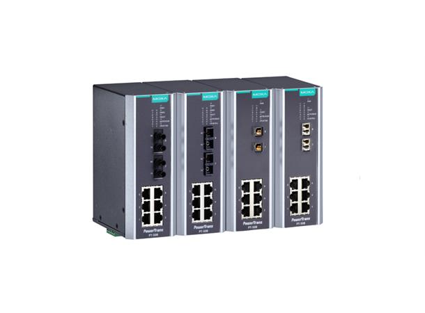 The PowerTrans PT-508 is designed to meet the demands of power substation automation systems (IEC 61850-3, IEEE 1613). The PT-508's optical fiber fast Ethernet backbone, redundant ring, and 24/48 VDC or 110/220 VDC/VAC dual isolated redundant power supplies increase the reliability of your communications and save on switchescabling/wiring costs. In addition, the DIN-Rail and wallmount design of the PT-508 makes network planning easy, and allows greater flexibility by letting you install up to 8 fast Ethernet ports for power distribution applications.