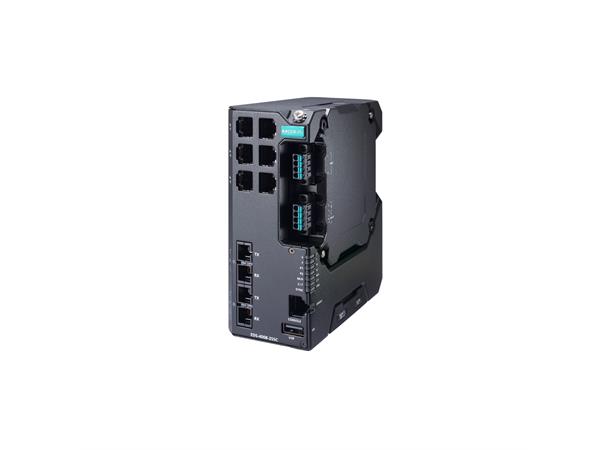 Managed Ethernet switch with 6 10/100BaseT(X) ports, 2 100BaseFX single-mode ports with SC connectors, dual power inputs 12/24/48 VDC, -40 to 75°C operating temperature